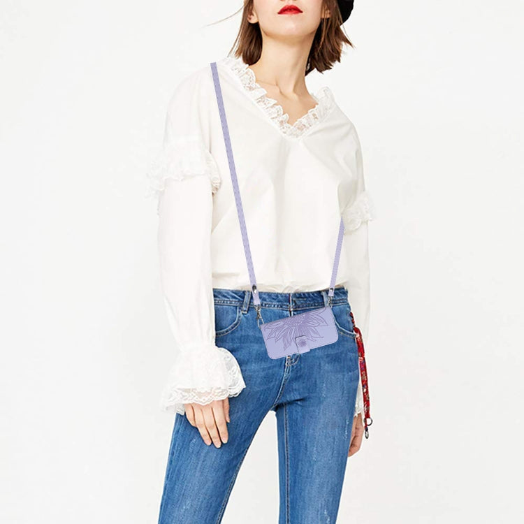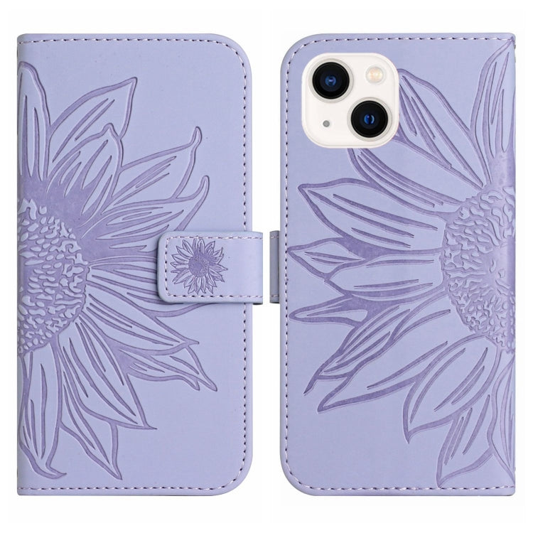 For iPhone 14 Skin Feel Sun Flower Pattern Flip Leather Phone Case with Lanyard(Purple)