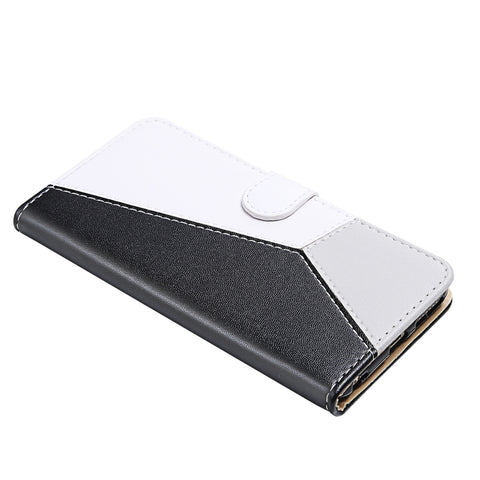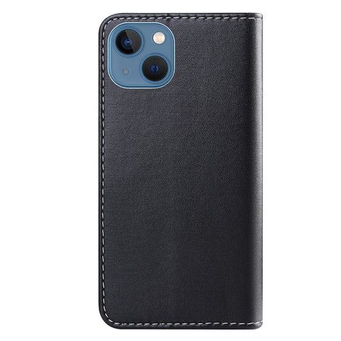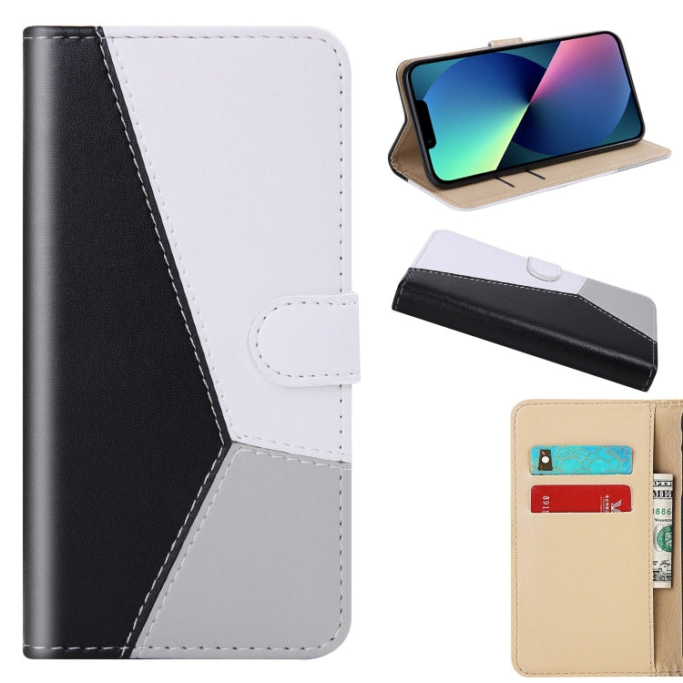 For iPhone 14 Tricolor Stitching Flip Leather Phone Case (Black)