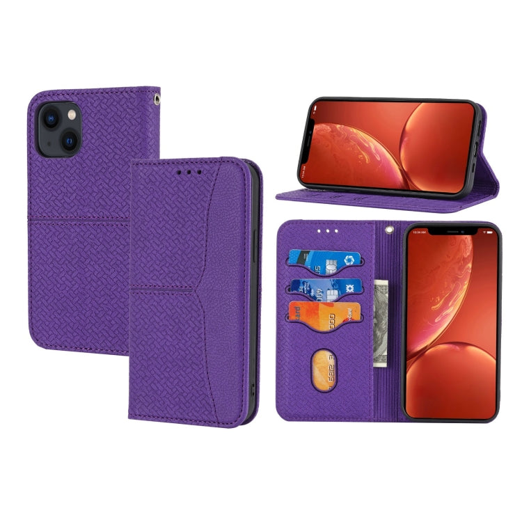 For iPhone 14 Woven Texture Leather Case (Purple)