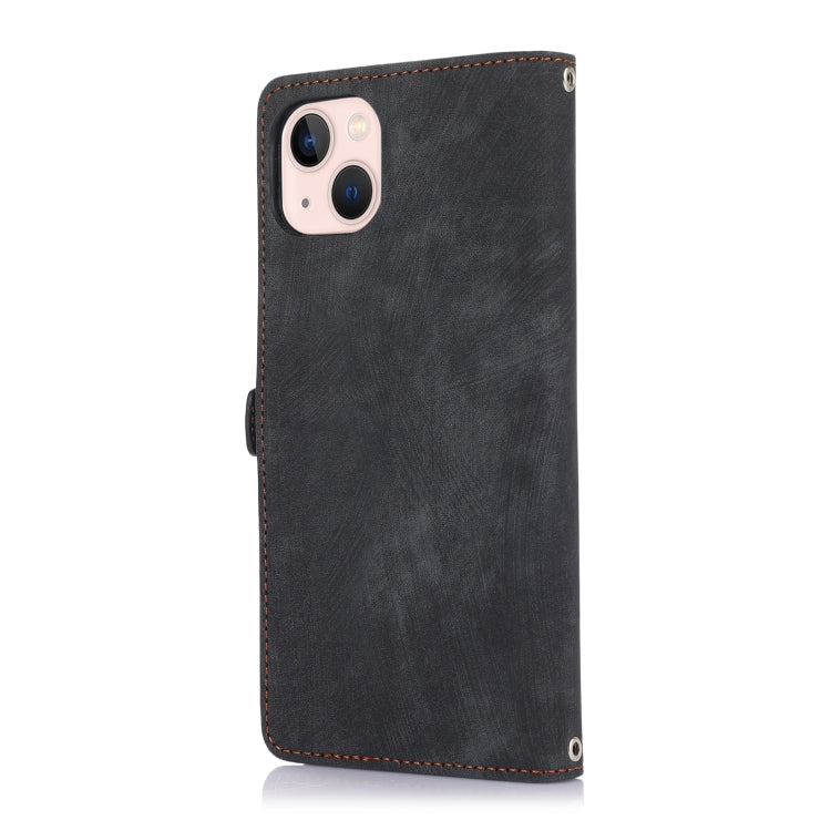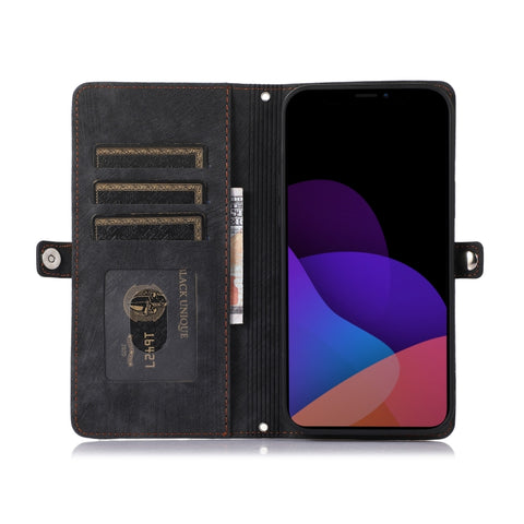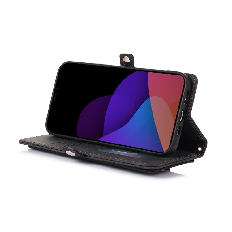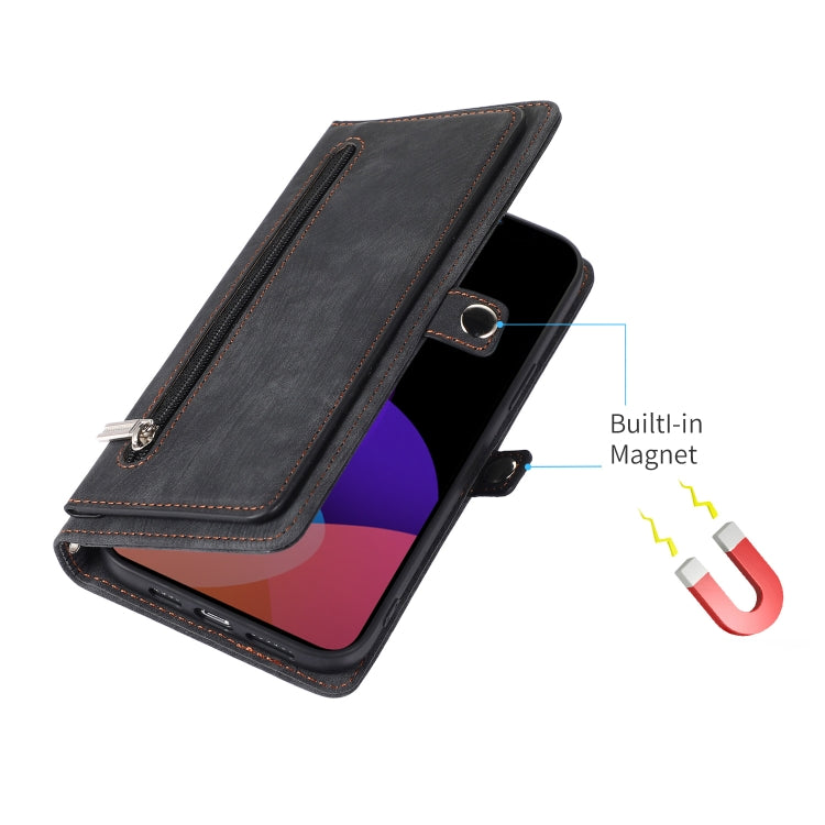 For iPhone 14 Zipper Card Slot Buckle Wallet Leather Phone Case (Black)