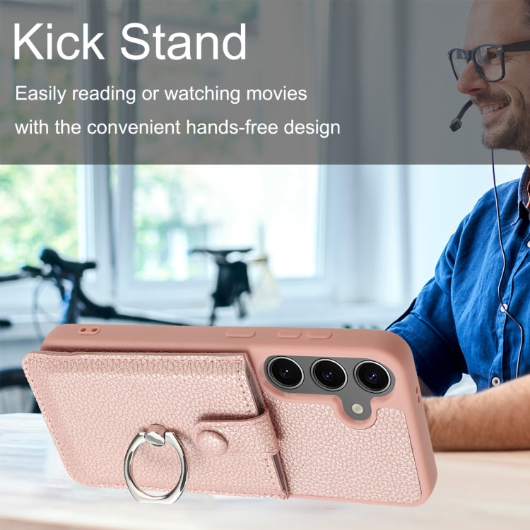 Litchi Texture Drawing Card Bag Ring Holder Phone Case, For Samsung Galaxy S25 5G, For Samsung Galaxy S25+ 5G, For Samsung Galaxy S25 Ultra 5G, For Samsung Galaxy S24 FE 5G